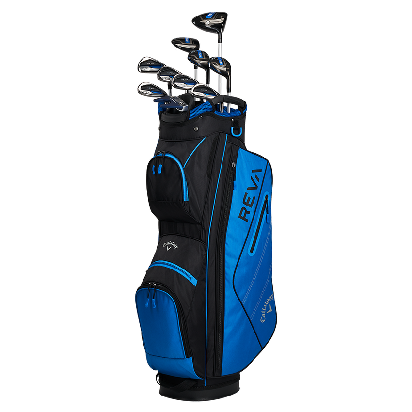 “The new REVA 11-Piece Complete Set from Callaway, the #1 brand for womenu2019s equipment, is designed with premium performance in mind. This complete offering is engineered for women of all skill levels who want to increase their distance, hit great shots, and enjoy the game more than ever before. This set includes: Driver, 3 Wood, 5 & 6 Hybrids, 7 through 9 Irons, Pitching and Sand Wedge, Putter, Cart Bag, and (5) Headcovers.”